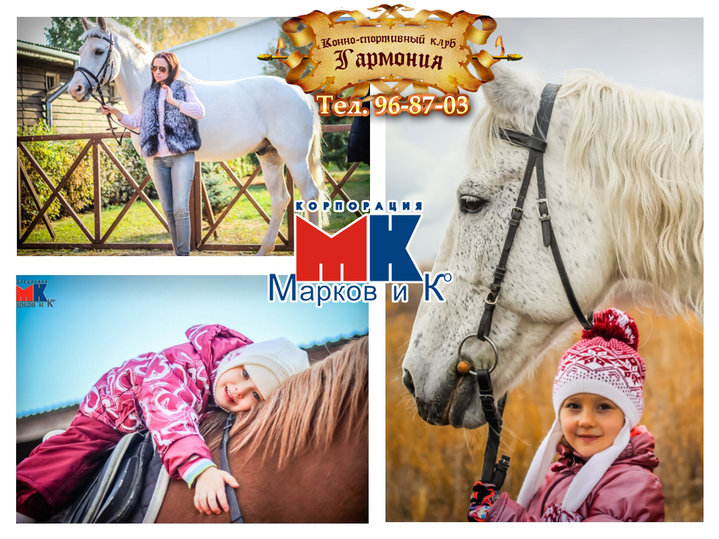 Конно-спортивный клуб Марков и К "ГАРМОНИЯ" приглашает на увлекательное знакомство с самым грациозным и благородным животным - лошадью.